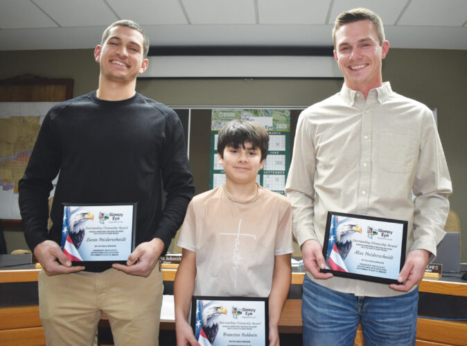 SLEEPY EYE — Two young Sleepy Eye men and an 11-year-old boy were honored at a Sleepy Eye City Council meeting Tuesday for their lifesaving efforts during a May 8 house fire.