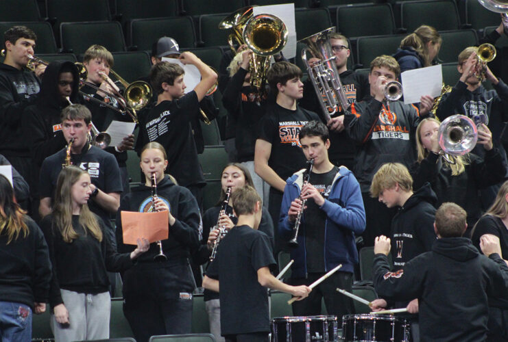 MARSHALL — Supported by a heavily-decorated shelf and wall display of medals and trophies in the classroom collected over recent years, the Marshall High School band has had an eventful start to the school year.