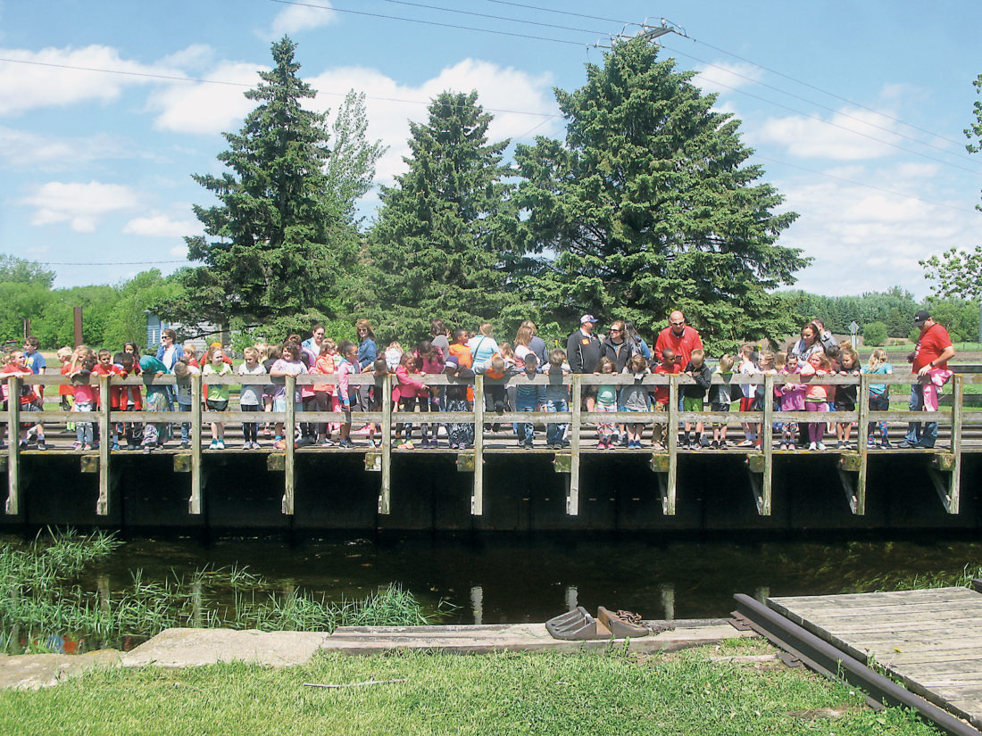 Four classes of second-grade students from Park Side Elementary School in Marshall took a ride on the railroad turntable at End-O-Line Railroad Park and Museum earlier this month. The turntable was used to turn train engines around after they reached the end of the railroad line.