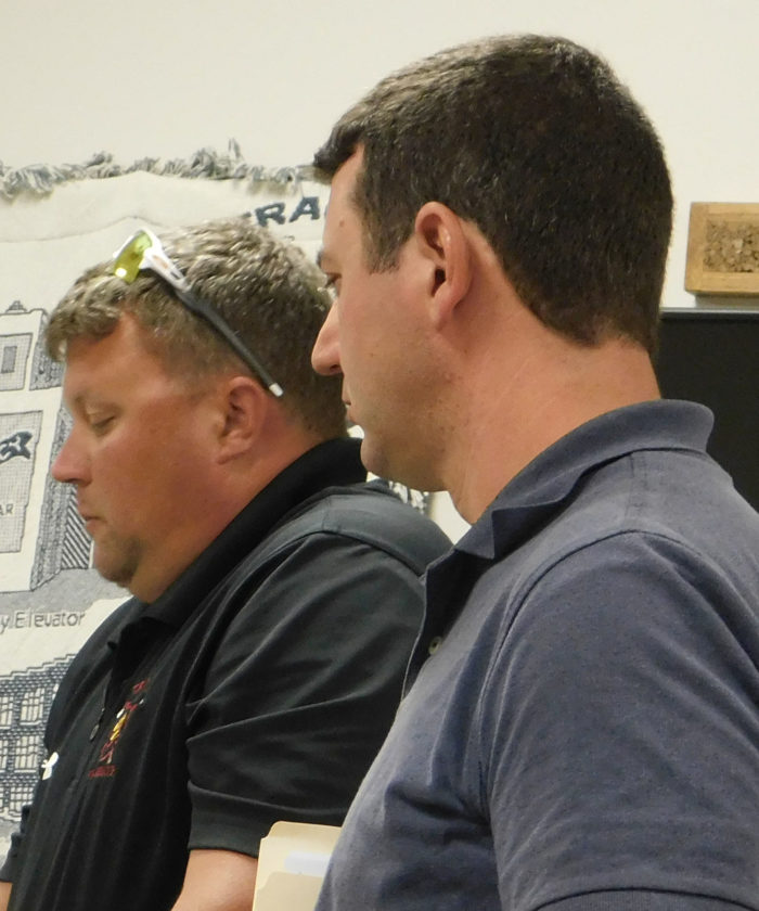 Photo by Jody Isaackson Dale Johnson and John Lanoue appear before the Tracy City Council meeting Monday evening to propose a developer’s plan for the Red Rooster property.