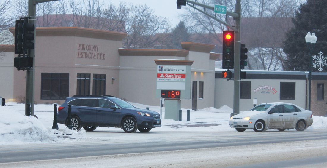 Photo by Mike Lamb The digital sign at Main and Third streets lets motorists know how cold it really is in Marshall late Tuesday afternoon.