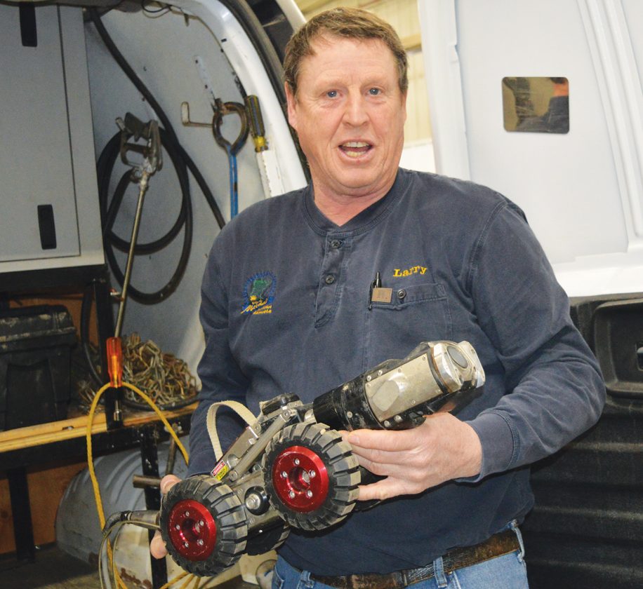 Photo by Cindy Votruba Larry Polfliet talks about a camera used by the Marshall Wastewater Facility that runs down sewer lines to inspect for problems.