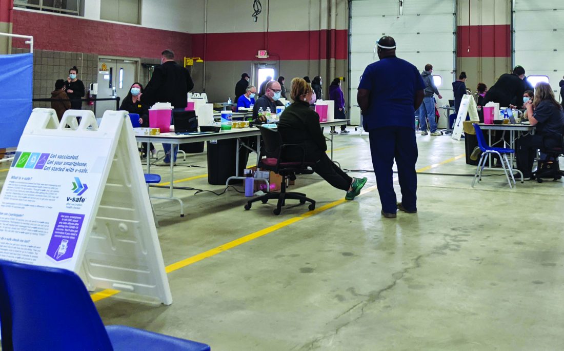 Photo by Mike Lamb A steady stream of people took advantage of the community COVID-19 vaccination event held at the Minnesota Emergency Response and Industrial Training Center in Marshall Saturday. The event focused on front line workers such as those who work at processing plants and in agriculture. They received the Johnson & Johnson vaccine which only requires one shot. The Minnesota Department of Health reported 14 more COVID-19 cases and one COVID-19-related death over the weekend in Lyon County.