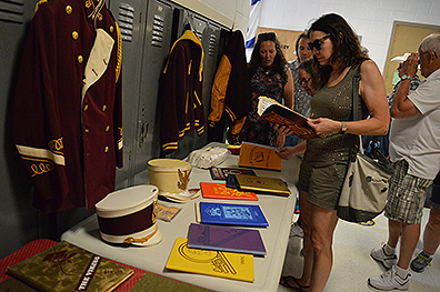 Photo by Deb Gau Ruthton School alumni and community members got one last chance to look through the building during Saturday’s all-school reunion. While most of the building was cleaned out at the end of the school year, reunion organizers had a display of Ruthton yearbooks, band uniforms and other memorabilia.