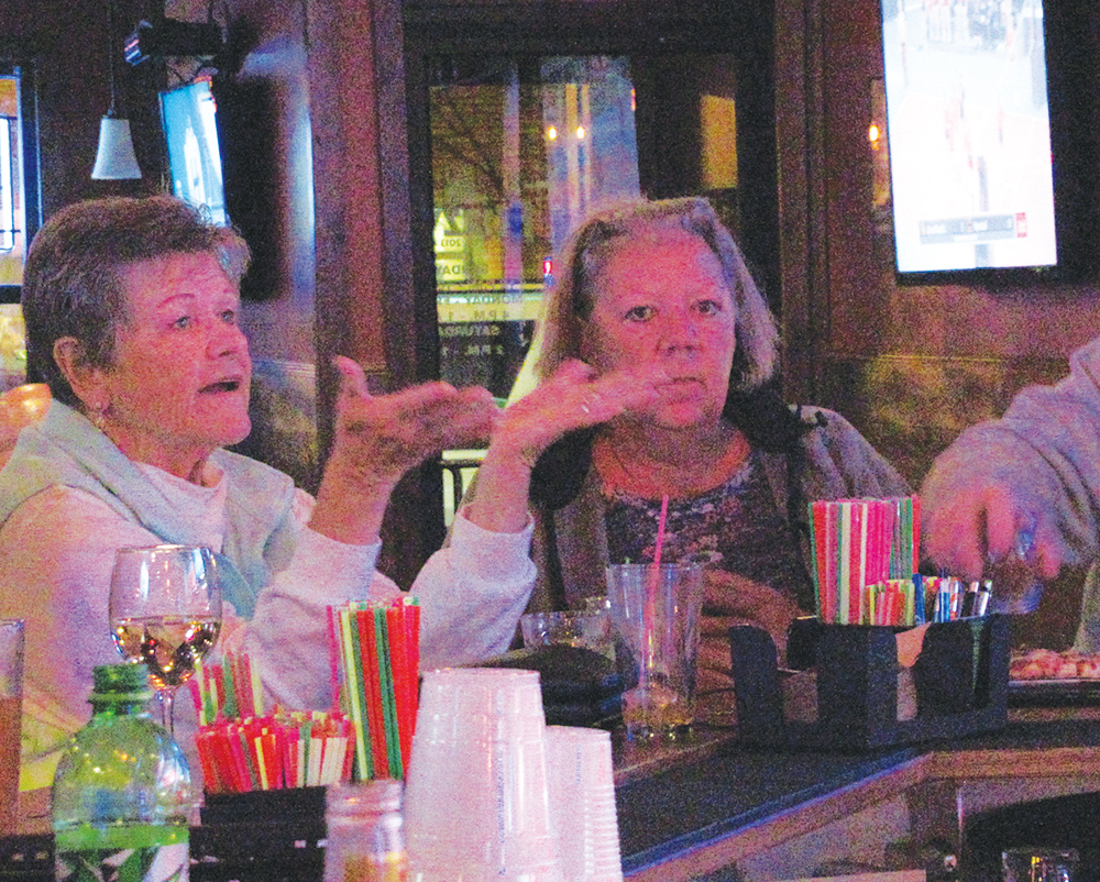 The fans rooting for the Marshall Tiger volleyball team on Friday night weren’t only in the stands. At Fuzzy’s bar in Marshall, Jean Rickard, at left, reacted as she watched a livestream of the Tigers’ match against Grand Rapids. A few tables of people at Fuzzy’s were watching the Tigers advance to the state volleyball finals.