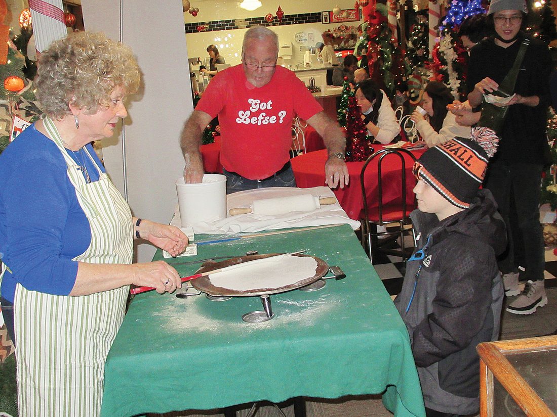 During the museum’s holiday open house, there was a line of people waiting their turn to try some freshly-cooked lefse made by Howard and Linda Dahlager.