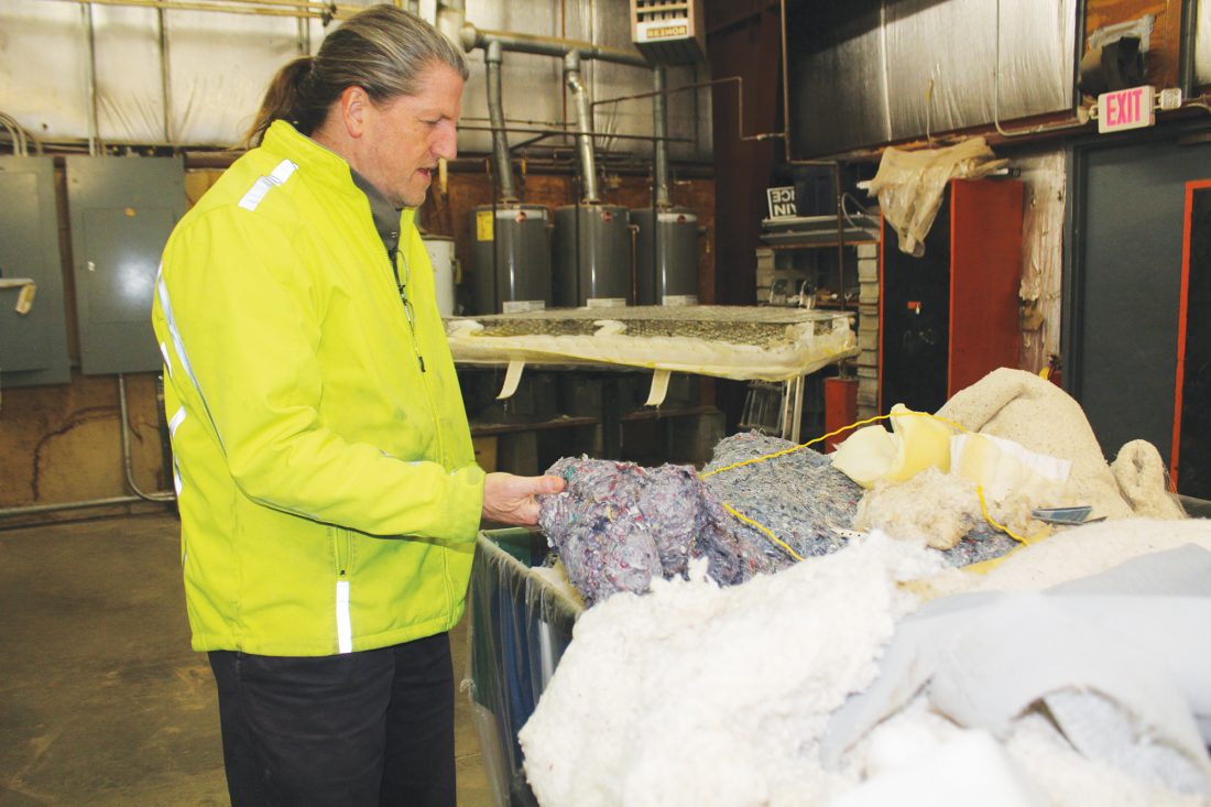 Photo by Deb Gau Lyon County Environmental Administrator Roger Schroeder explained how the county’s mattress recycling program breaks down old mattresses into recyclable and non-recyclable materials. The county collected more than 3,000 mattresses last year that would otherwise have taken up valuable landfill space