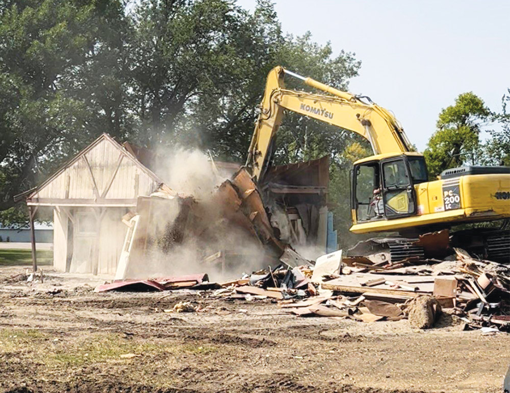Photo courtesy of Shannon Geihl An excavator tears down the former Pizza Ranch restaurant in Cottonwood on Monday. The restaurant has been closed for many years.