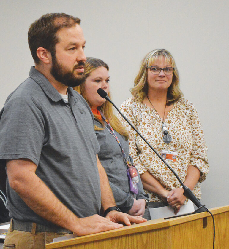 Photo by Deb Gau Marshall Middle School teachers Joseph Schmitt, Laura Stiles and Erica Hess recently gave a presentation to the Marshall School Board on new agriculture, FACS and career pathways classes for MMS students. Students in grades 7 and 8 are all going through the new programs.