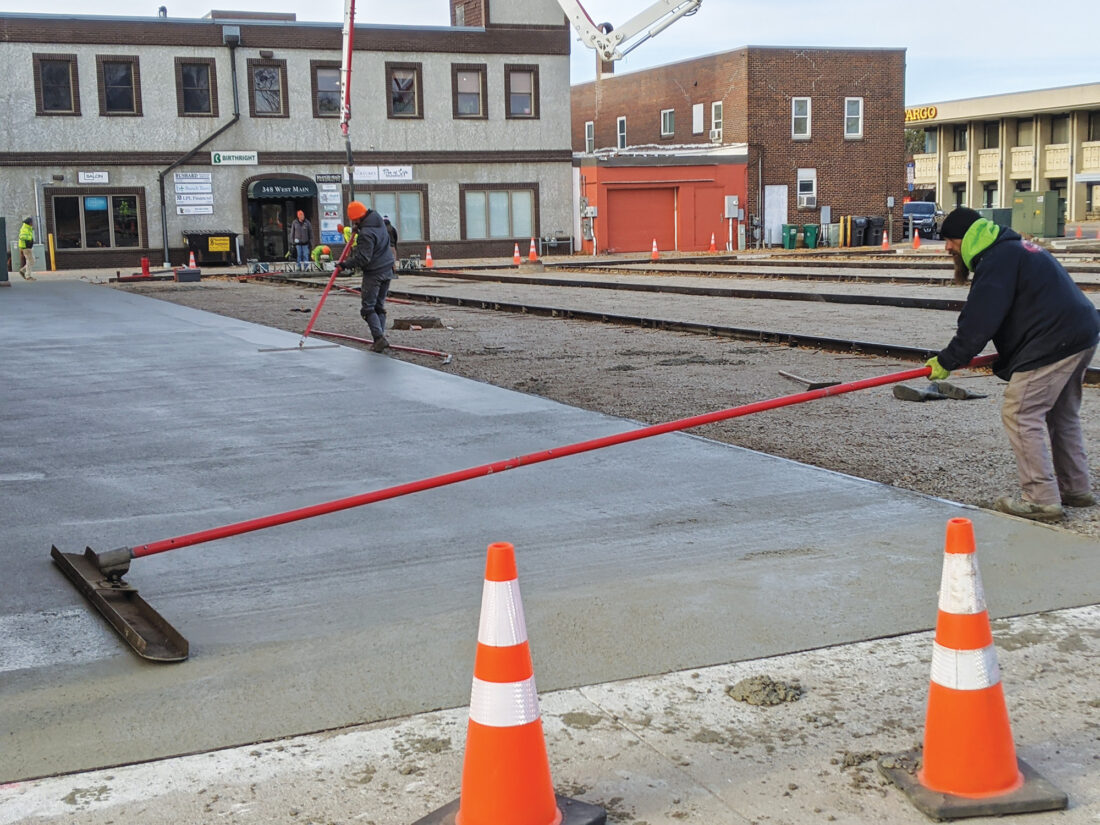 Photo by Mike Lamb Work crews were pour concrete in the Baldwin parking lot near Lyon and Fourth streets on Wednesday.