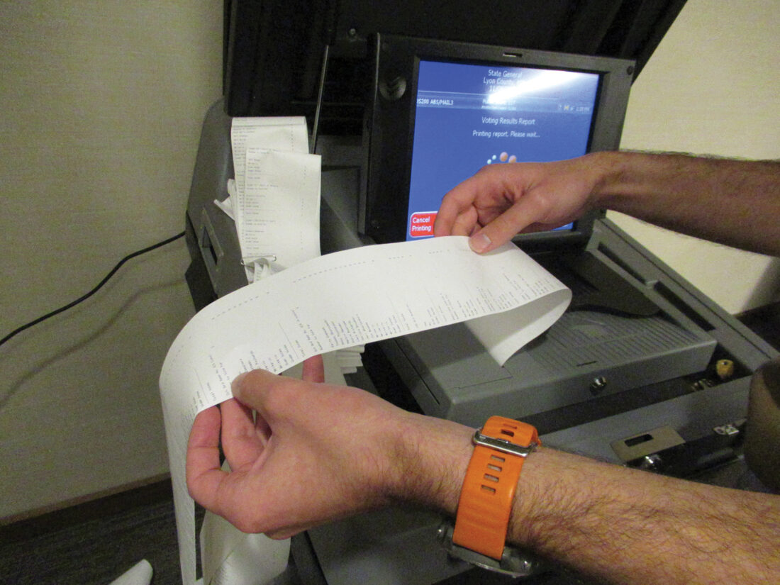 Another important task for the county auditor/treasurer’s office was to test that electronic voting equipment was working properly and accurately. In addition to conducting preliminary accuracy tests, the auditor/treasurer’s office held a public accuracy test Friday at the Lyon County Government Center. During the public accuracy test, a set of test ballots with predetermined results were scanned by county voting equipment. Then, workers checked the machines’ tabulations to see if they matched the test results.