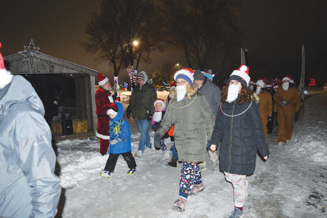 A slew of Santas headed out on a 1-mile walk or run through Independence Park on Friday evening. Participants in the “Run For a Claus” event each received a Santa hat and beard to wear.