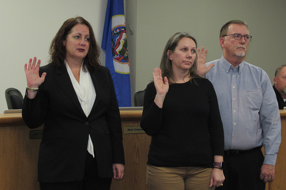 Returning board members Jeff Chapman and Sara Runchey, and new board member Sara Brink, all took the oath of office at the start of the board’s first meeting of the year. As part of Tuesday’s business, elections were also held for school board officers.
