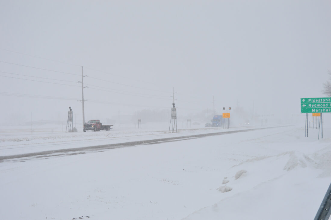MARSHALL — This morning brought a break in the snowfall for parts of southwest Minnesota, as Winter Storm Olive continues across the region. But that doesn’t mean the coast is clear for area residents, according to the National Weather Service and the Minnesota Department of Transportation.