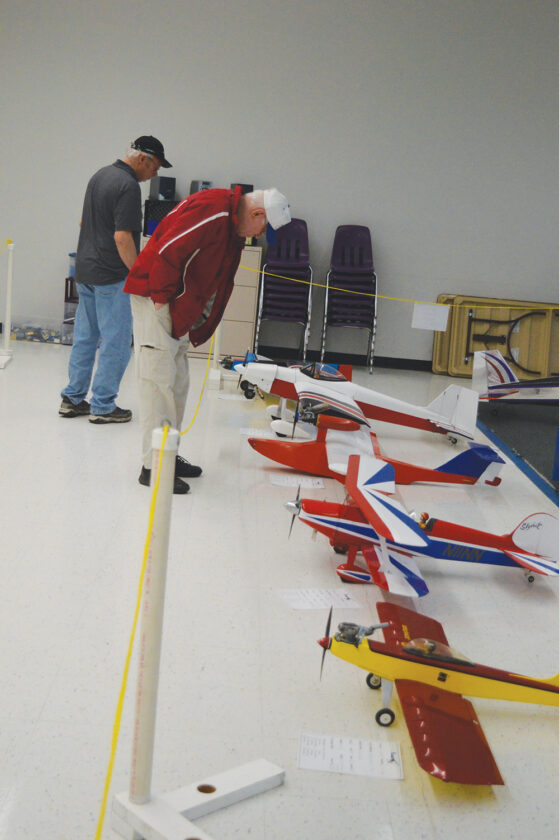 Photo by Deb Gau Model plane enthusiasts shared some of their favorite projects at a show Saturday at the Marshall Area YMCA. The airplanes on display included aircraft made from kits as well as from scratch.