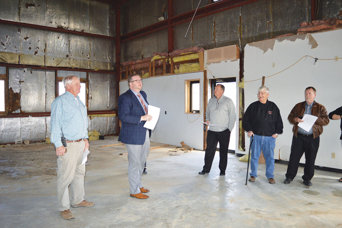 Photo by Deb Gau Marshall Public Schools building and grounds supervisor Warren Buchholz and Superintendent Jeremy Williams talked about ongoing work to build a Career and Technical Institute in Marshall. Buildings the district bought along North U.S. Highway 59 have been gutted ahead of renovation work.
