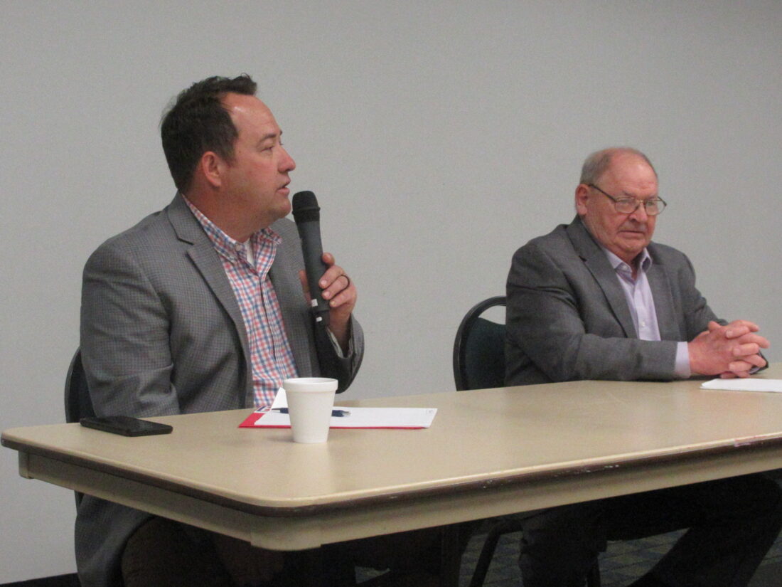 Minnesota state Rep. Chris Swedzinski and Sen. Gary Dahms took questions from area residents at a town hall meeting Thursday morning in Marshall.