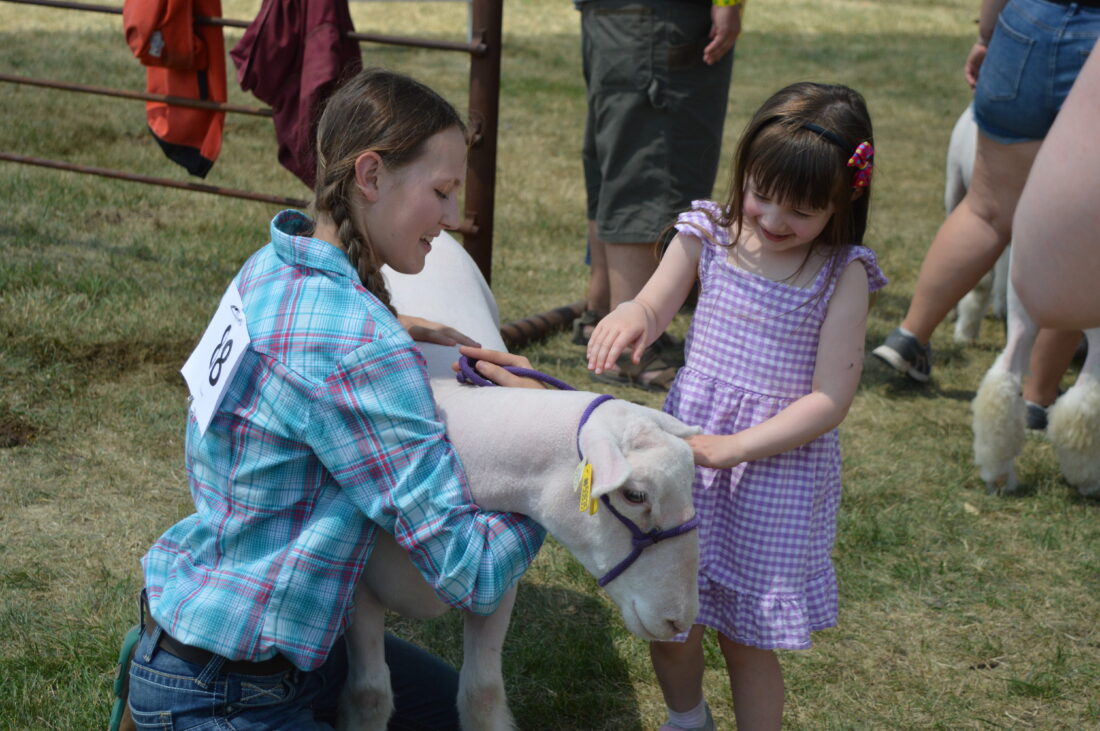 Vivienne Chicoine got a chance to pet one of the sheep that Mackenzie Zollner was showing at the Redwood County Fair on Friday. The 4-H sheep show was one of the many livestock events taking place at the fair this week.