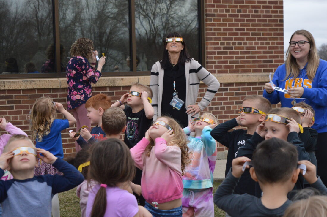 Teachers like Heidi Aufenthie, and preschoolers at Holy Redeemer School headed outside with special viewing glasses to try and see Monday’s solar eclipse. It turned out to be a little too cloudy, however.