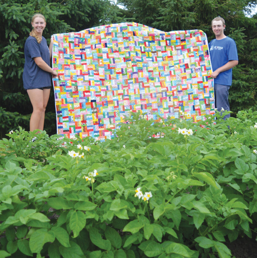 Photo by Deb Gau A colorful family quilt serves as a backdrop to the blooming potato patch at Ruppert Family Produce near Currie. Siblings Katelyn and Zachery Ruppert have grown up raising vegetables and melons sold around southwest Minnesota.