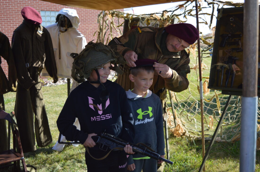 On Saturday afternoon, a group of people were gathered around Strand as he talked about how WWII paratroopers’ gear worked. One of the visitors, Jordan Stattelman, got a chance to try on a parachute harness.