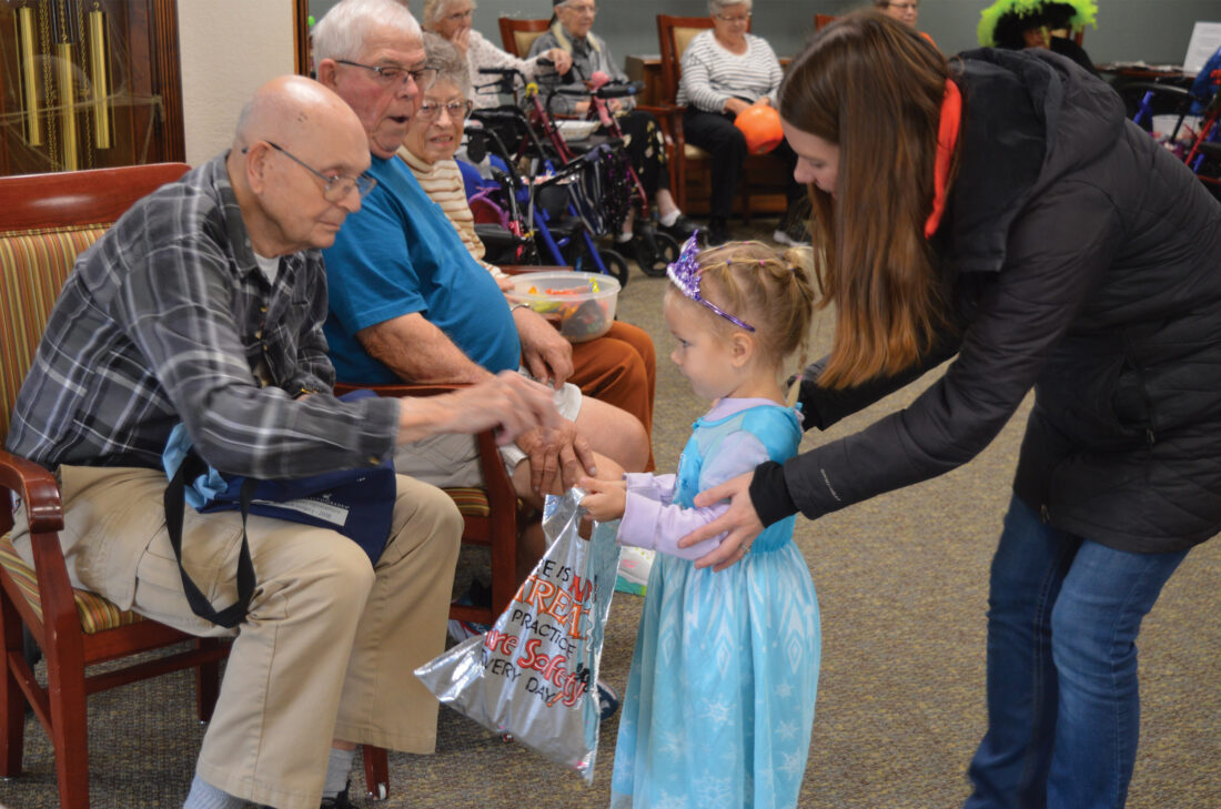 Residents at Hill Street Place in Marshall gathered with candy to hand out to children visiting in costume.