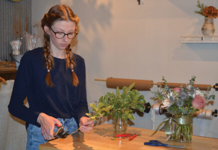 Photo by Deb Gau Kelly Myhre trims greenery as she worked on a floral arrangement in a vase. Kelly and her mom Steph Myhre said they try to bring their own style to bouquets and arrangements at their new business, Third Street Floral.
