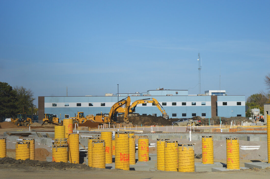 Photo by Deb Gau Yellow column forms showed where footings were being built for the water slides at the new Marshall Aquatic Center this week.