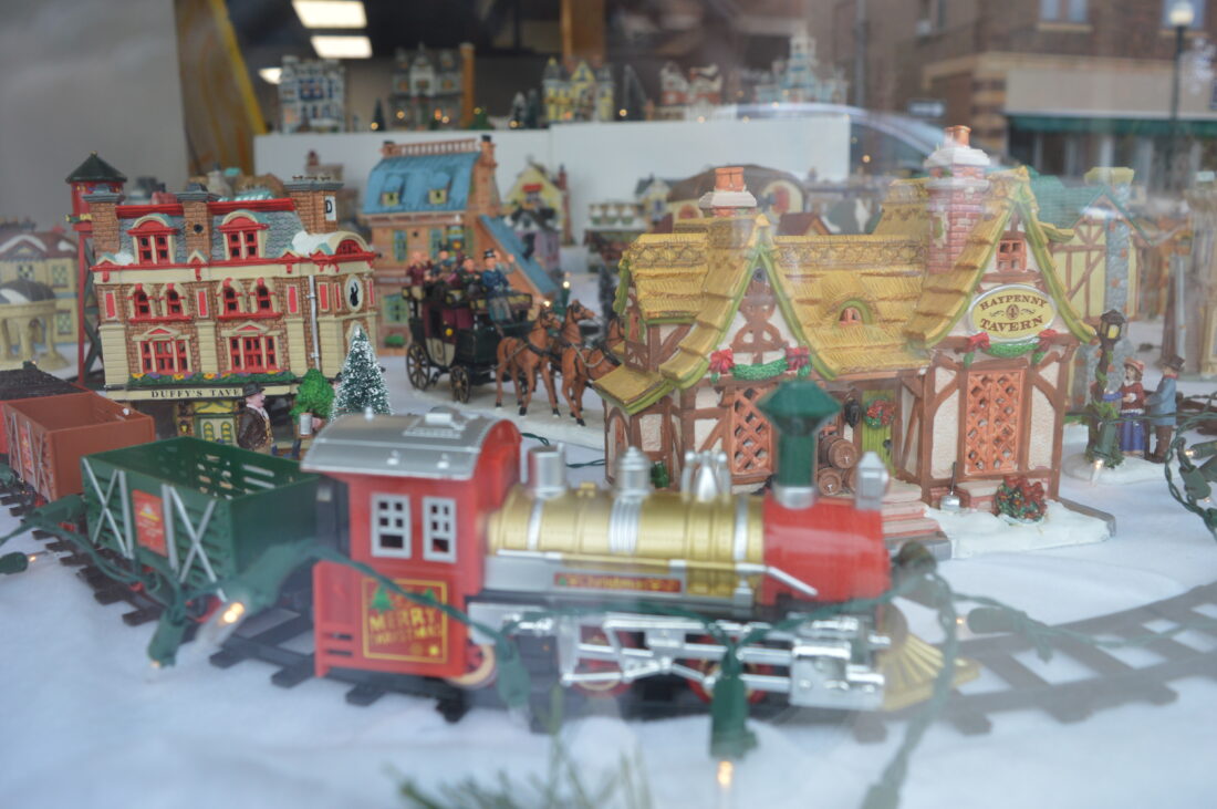 “I think everyone will enjoy it,” said Wendel. The display of Lennox Christmas village buildings and figures fills the gallery window, with everything from houses and shops to a railroad line. “It’s the first time I’ve had it up in about eight years.”