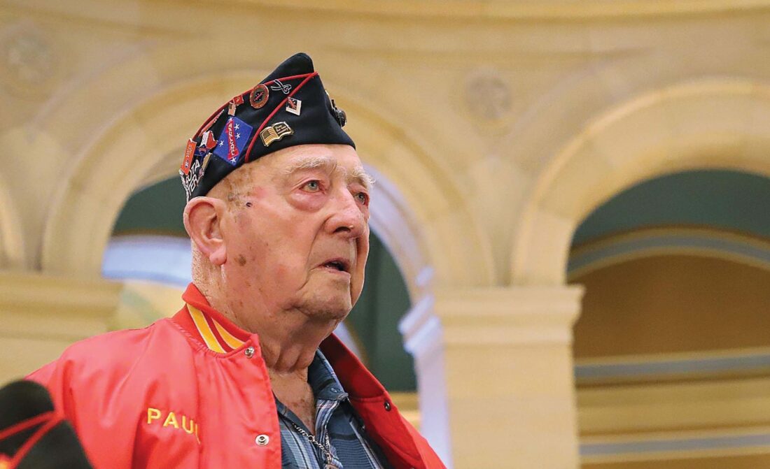 Submitted photo At age 101 three years ago, Paul Wojahn speaks at the state Capitol Rotunda at the Veterans Day on the Hill Rally.