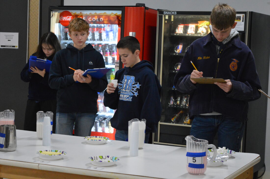 FFA students including Carter Case of Lake Crystal, and Quentin Gosser of Russell-Tyler-Ruthton, took part in the milk quality and products competitive event at the Ag Bowl Scholarship Invitational. Students had to evaluate a variety of dairy products, including milk, butter and different kinds of cheese.