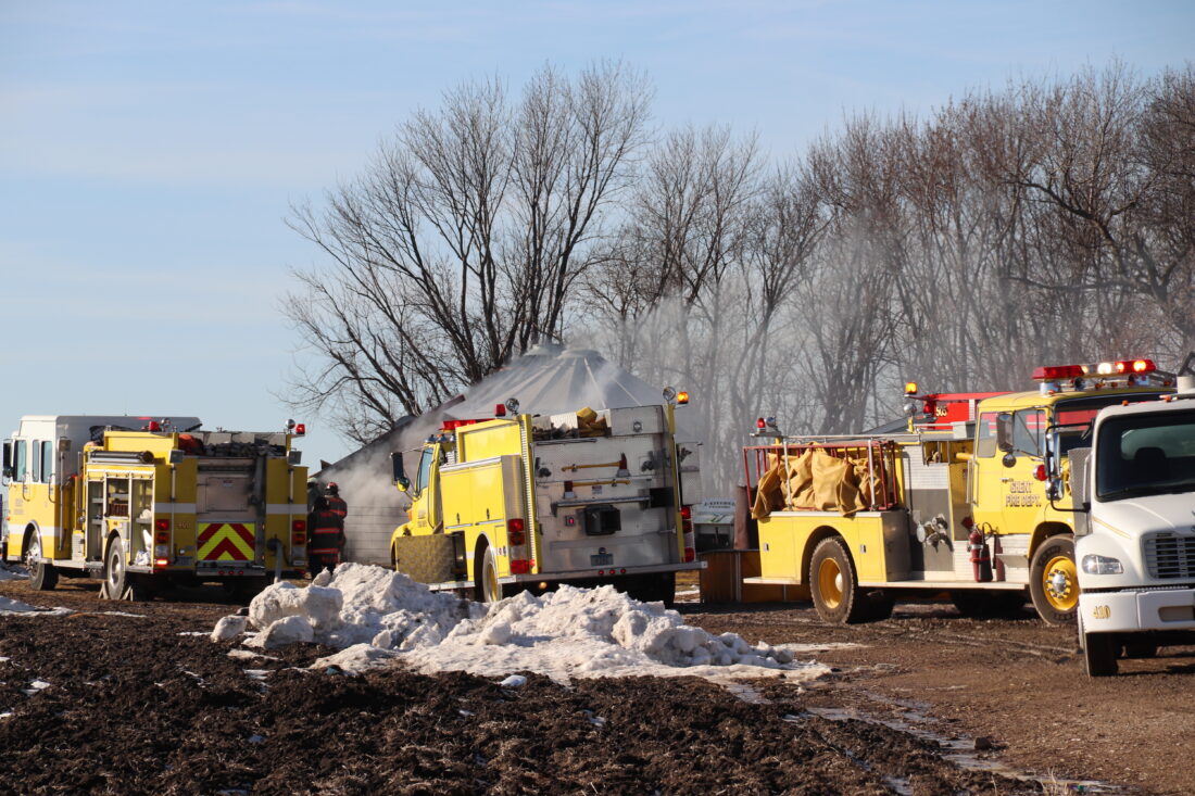 The Ghent Fire Department was called to a fire at a site north of the intersection of U.S. Highway 59 and Lyon County Road 8, Maertens said. He said the fire was in a building measuring about 20 by 40 feet, that was being used to raise livestock.