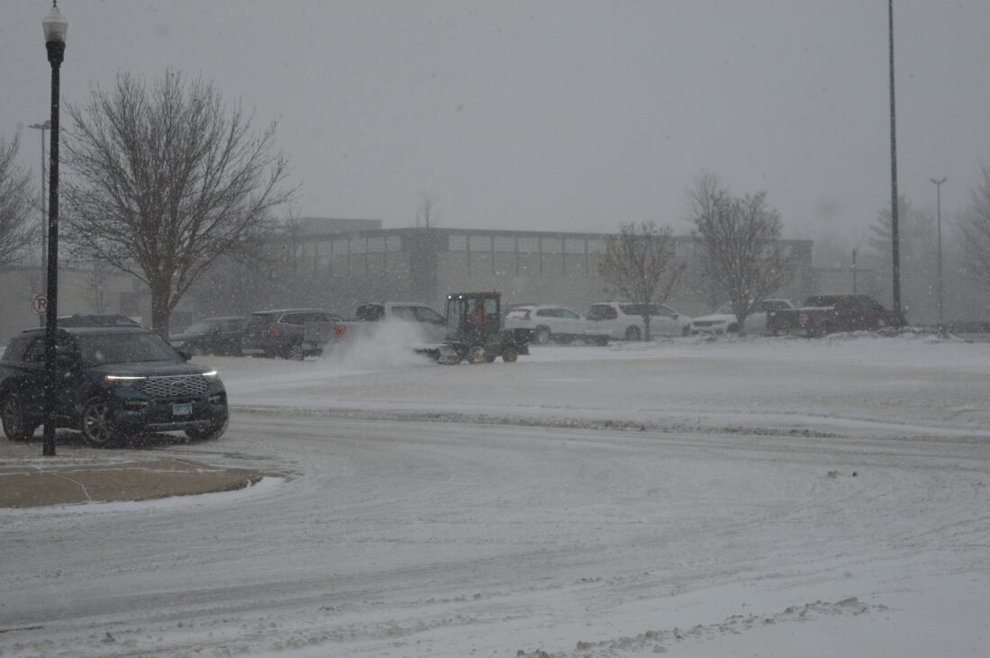 Snowflakes were flying fast, as a worker cleared sidewalks near the Schwan’s offices and the Marshall Area YMCA on Wednesday afternoon. While blizzard conditions are forecast to die down today, a dangerous cold snap will also move in, the National Weather Service said.