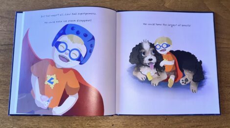 A set of pages in Daniel Bot's new book, 'Levi Lifts Off,' showcases some of the super powers the character has.