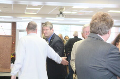 - Photos by Samantha Davis: Southwest Minnesota State University president Dr. David Jones (center) socializes with Marshall community members at his welcome reception Thursday afternoon after being announced as the university’s 11th president on Wednesday.