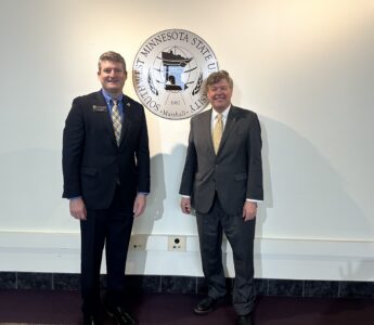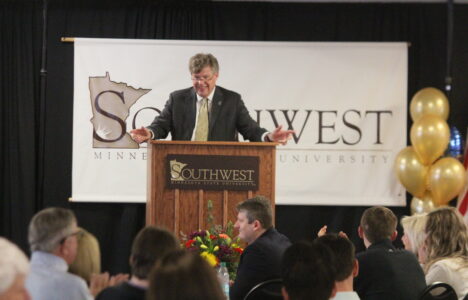 “This was no small thing in choosing him (Jones) to be the president. All of our institutions, particularly the state universities, are facing future enrollment challenges. Having a president who is an expert on enrollment management, on attracting students, on retaining students, this is going to be critical in the years to come,” Olson said. “For SMSU to prosper, for Marshall to prosper, we’re going to need folks who want to come here from other parts of the state, or even from the upper midwest … That’s a challenge facing all of higher ed, especially in Minnesota, especially the state universities. I think SMSU has a president here, who knows how to manage that.”