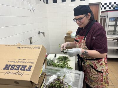 Photo by Samantha Davis: Chef Jamie Sultze visits Marshall High School this week to serve a Taiwanese meal to students on Wednesday.