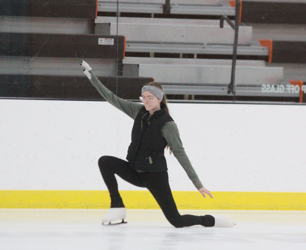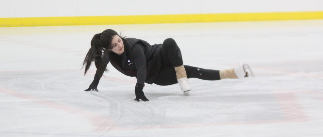 Photo by Samantha Davis: Southwest Figure Skating Club skater and coach Mikayla Chesley practices a move for a number in the upcoming annual ice show.