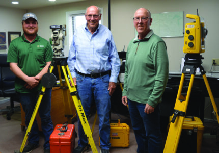 - Photo by Deb Gau Alec Bueltel, Lyle Moseng and Dan Bueltel stood with some of the different land surveying equipment they’ve worked with over the years. This year, Bueltel-Moseng Land Surveying marks its 50th anniversary as a business.