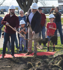 Sunday’s celebration included prayer and remarks by Pavek and Christensen, before members of the congregation could join in with breaking ground. Some of the first people in line for the groundbreaking were kids, who put on hard hats and took turns digging with the ceremonial golden shovels.