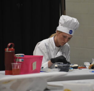 - Photo by Samantha Davis: Camilla Terry of Harrisburg, South Dakota, works on decorating her cake at the Southwest West Central Service Cooperative’s annual culinary skills challenge on Thursday in Marshall.
