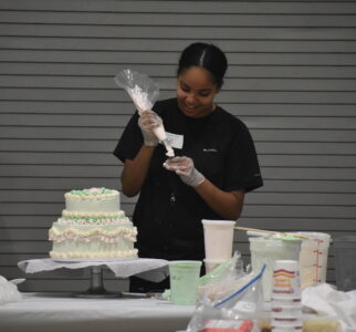A group of students were working hard in the cake-decorating competition toward the back of the R/A Facility, with varying themes being expressed.