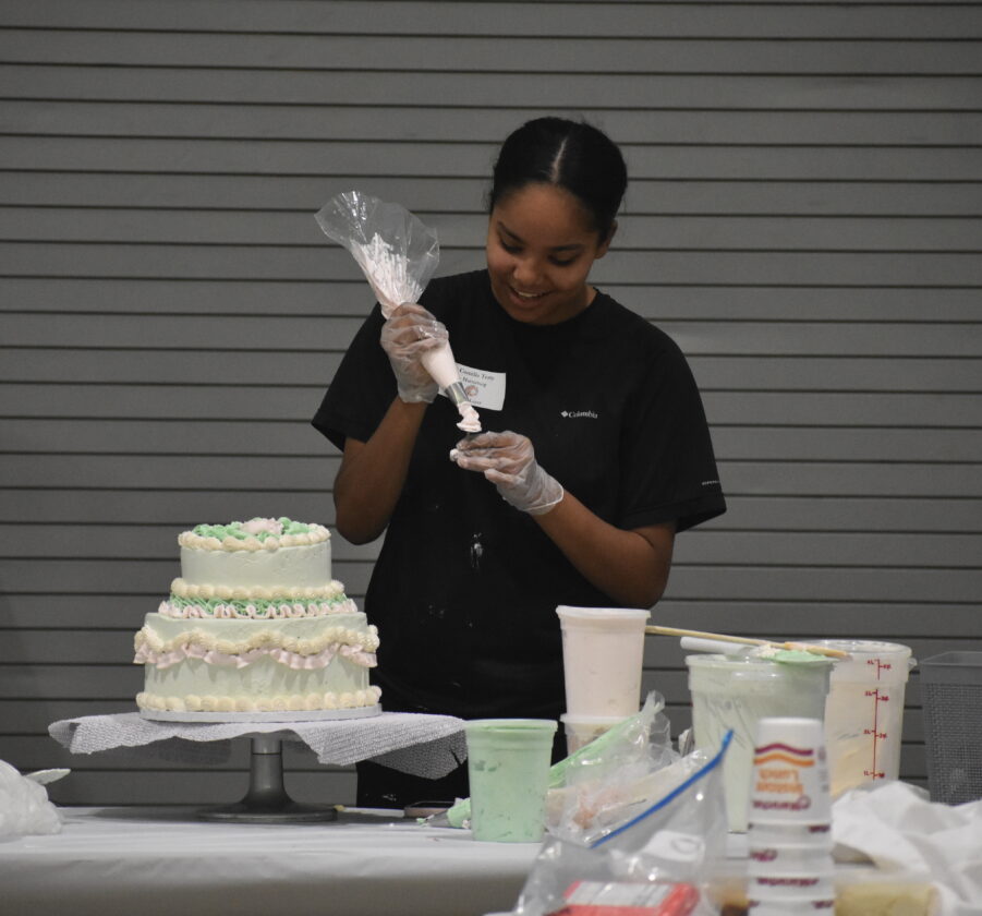 “(I’ve been decorating cakes) since I was like 15 or 14. My mom slowly started letting me. She would be like, ‘Hey you can come do the border,’ and then I tried fondant for a little bit,” Camilla Terry of Harrisburg, South Dakota, said. “Now, I am almost done (with my cake). I am going to add some glitter, which is my favorite part.”