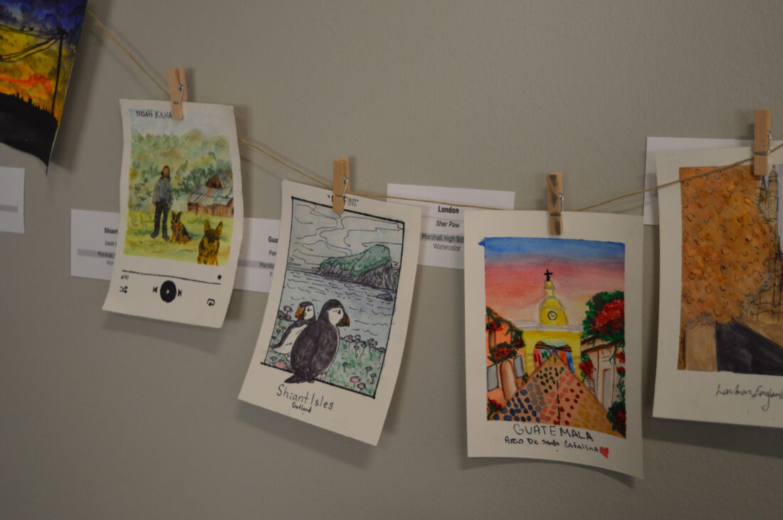 Some of the students whose artwork was on display visited this week’s reception. Marshall High School student Ayden Keen had art in the show including paintings. One of his artworks was a painting exercise that also incorporated a photo.