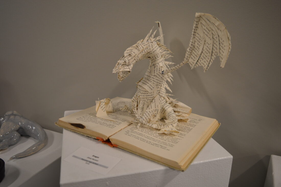 - Photo by Deb Gau Pages from an old book took on the shape of a dragon, in a sculpture in the Art Stars exhibit.