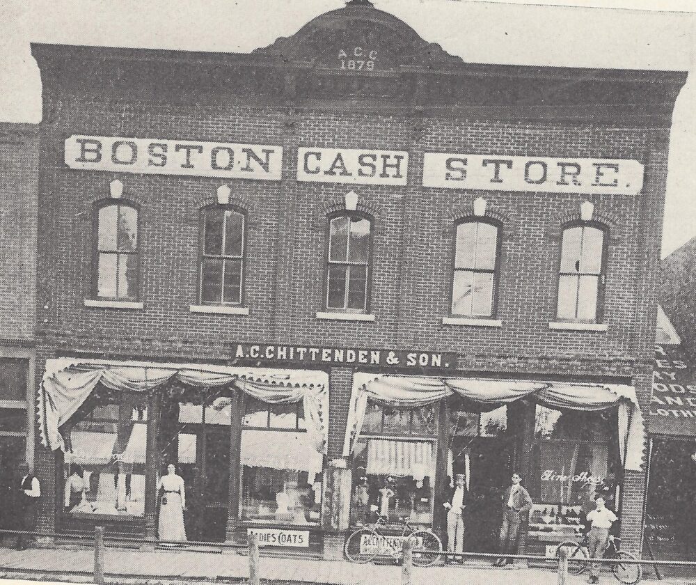 Photo courtesy of Lyon County Historical Society A photo shows A.C. Chittenden's Boston Cash Store, which was located on Marshall's Main Street. A.C. Chittenden, one of Marshall's earliest settlers, was descended from a veteran of the Revolutionary War. Some of the early residents of Lyon County came from families with historical connections to the fight for American independence.