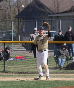 - Photo by Samantha Davis: Southwest Minnesota State University’s Jared Cortez fields a ground ball and throws to first base in the second game of a three-game series against University of Jamestown on Sunday in Marshall.