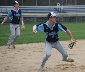 The Knights got into scoring position in the top of the sixth with Brayden Chandler getting to third base with a leadoff infield single, stealing second and then advancing to third after Mason Javers was called for a balk.
