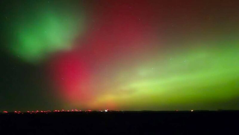 The northern lights put on a surprising show in the sky over southwest Minnesota Tuesday night. Area residents said they weren’t expecting to see auroras in bright reds and greens.