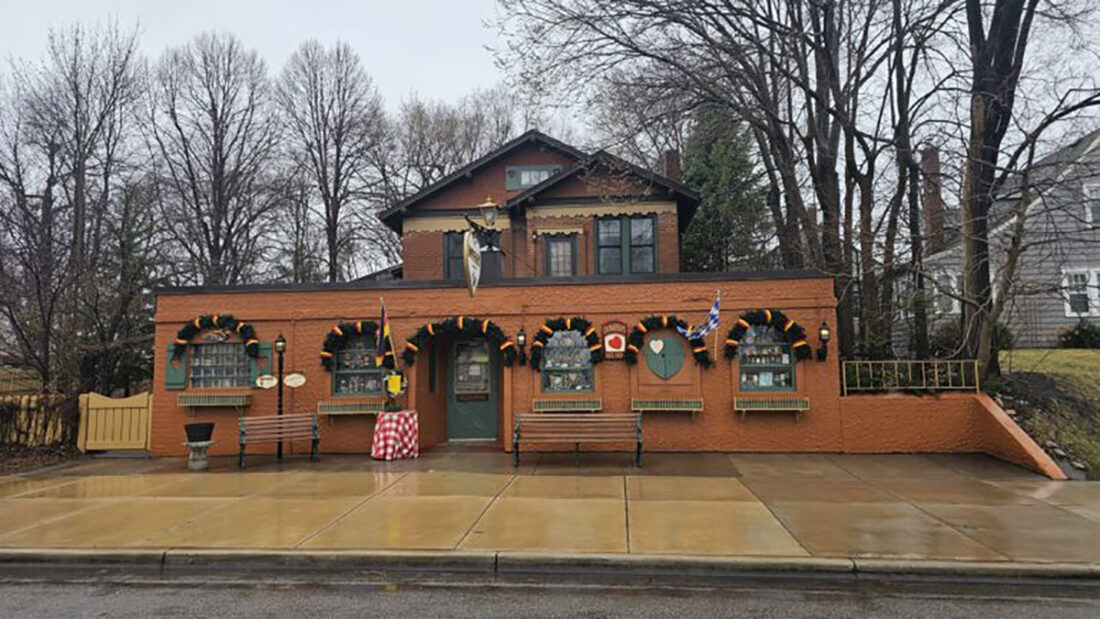 The distinctive old-world facade of Domeier’s German Store at 1020 S. Minnesota St. is adorned with festive garlands and flags for the spring season. Now in its 92nd year, the landmark business reopened Wednesday, continuing its long-standing tradition of serving the community during Holy Week. (Photo by Amy Zents)